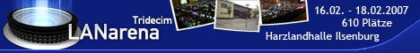 Vom 25.04.2008 bis 27.04.2008 erwarten Euch die LANarena 08/15 wieder mit 618 Gästen in der Harzlandhalle Ilsenburg.